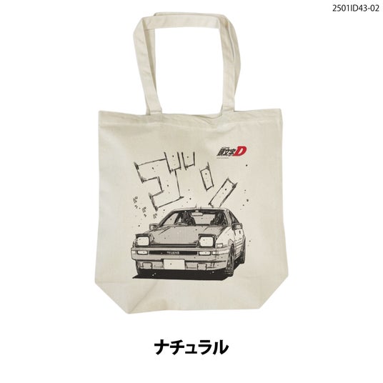 名作『頭文字D』の雰囲気をそのまま味わうことができる、トートバッグは、主人公・藤原拓海が運転するAE86(トレノ)が描かれた一コマがインパクトたっぷりにプリントされた一枚。