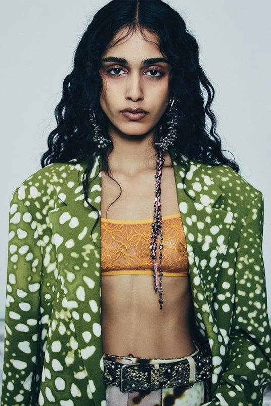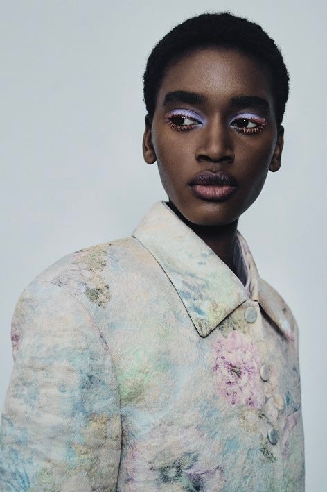 アントワープのスタジオチームが手がけたコレクションは、自然の美しさと構築的なデザインが調和し、洗練されたシルエットを生み出しています。花々の抽象的なプリントや鮮やかなカラーパレットが、官能的で大胆なムードを演出。贅沢なジャカードやシルクなど、多彩な素材が質感と陰影のコントラストを生み、メタリックな刺繍やスパングルの輝きが、クラフト感あふれるディテールを際立たせます。