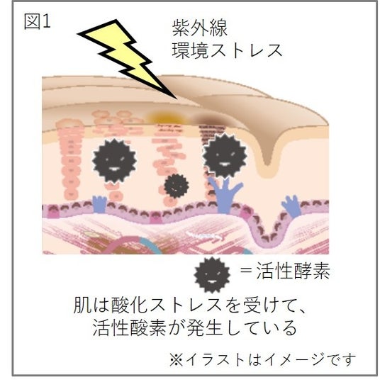 日常では紫外線や環境ストレスによって肌は酸化ストレスを受けています。このストレスから肌を守るには、2つの仕組みが重要です。