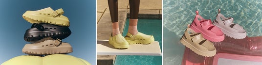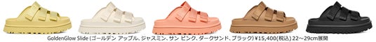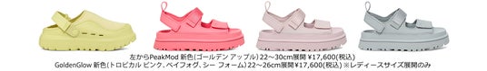 3月に発売したPeakModサンダルにも新しく加わったゴールデンアップルカラー、人気のGoldenGlowサンダルにも新色が登場し、フェスやキャンプなどのアウトドアシーンや、梅雨の不安定な天気も気にせず履ける、水濡れにも強いサンダルのラインナップが充実。UGGの新作サンダルで、春夏のお出かけに足元もファッションを楽しんで!