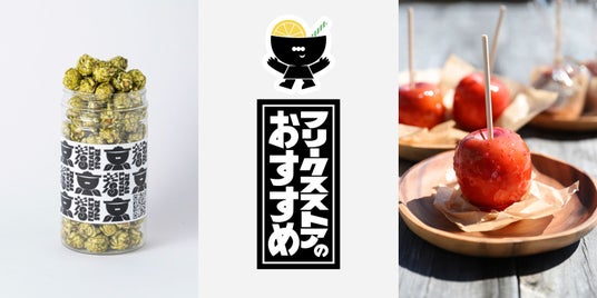 看板メニュー「クラシック・レモネード」は国産のレモンを使用。シナモンやスパイスパウダーのアクセントを効かせ、シロップ漬けしたレモンは皮まで食べることができます。長野県の耕作放棄地を減らす活動からうまれた国産とうもろこしのポップコーン「爆裂シナノポップ」の抹茶味は京都店限定フレーバー!持ち帰ることができるパッケージは、お土産としても最適です。