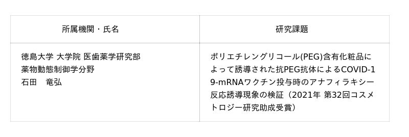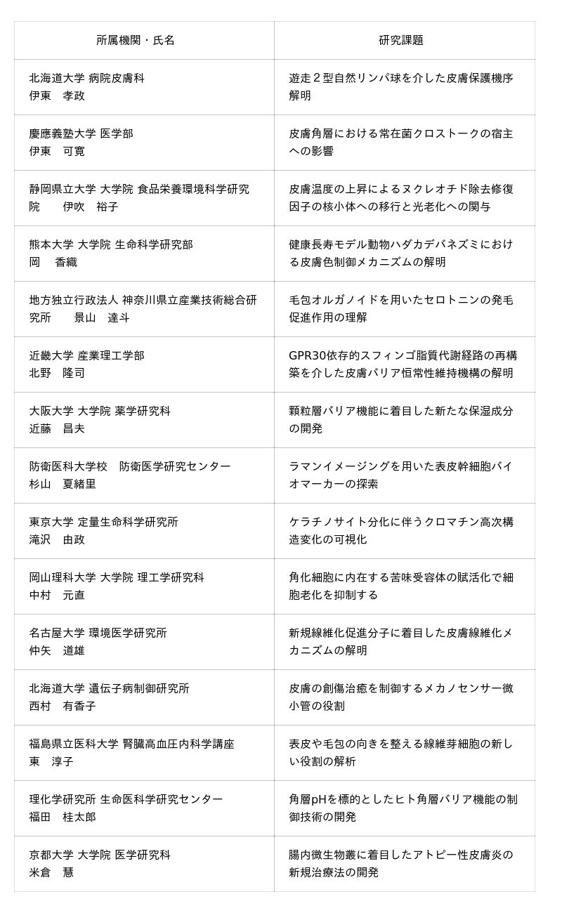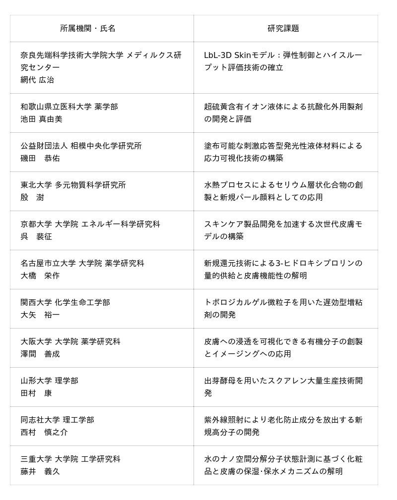 コスメトロジー研究助成 受賞者