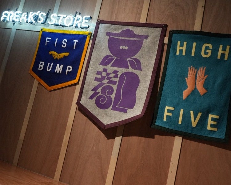 また、店頭を彩るグラフィックデザイナー美山有がデザインしたFREAK'S STORE京都ロゴは、器・建築・織物といった京都の伝統的なモチーフをベースに、現代的なエッセンスを加えた特別仕様。