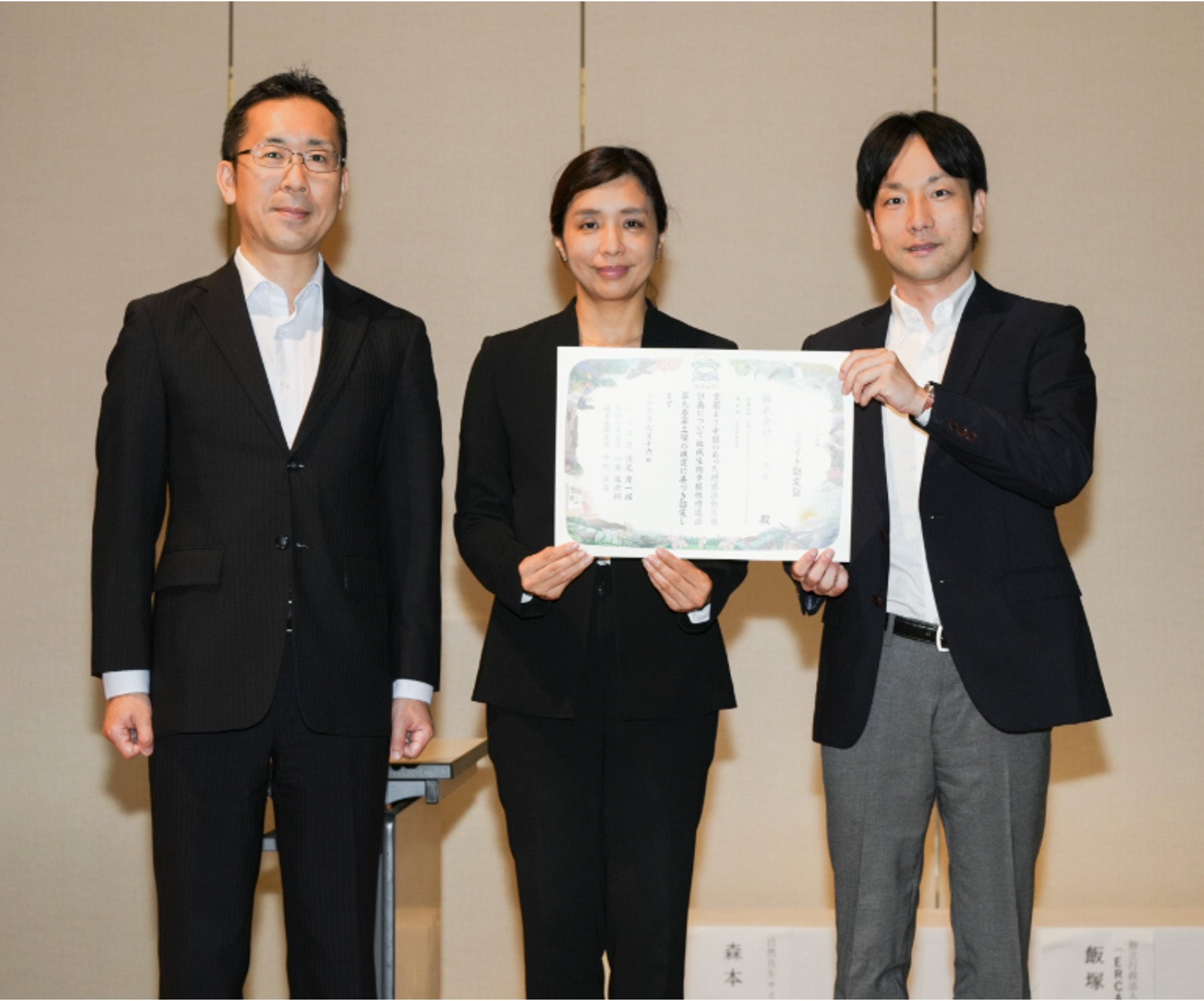 (自然共生サイト授賞式の様子 写真 中央:執行役員 CSuO松江 朝子)