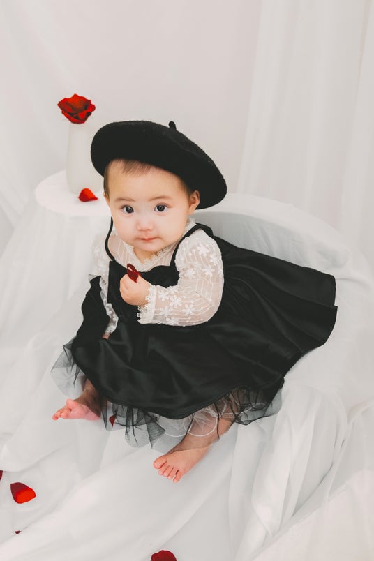 あどけない表情と黒ドレスの組み合わせが、なんともいえない可愛らしさを醸し出しています。