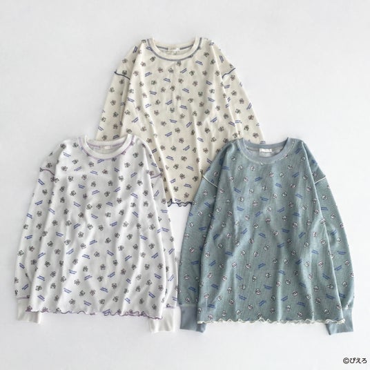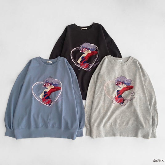 アパレルアイテムは、「クリィミーマミ」を主役に、サンドウォッシュ加工で古着のような風合いに仕立てたスウェットや 、きらきらのラメでキャラクターのサインを施したロンT、猫の恰好をした使い魔「ネガ」と「ポジ」をポップなカラー使いで配した総柄カットソーをラインアップ。