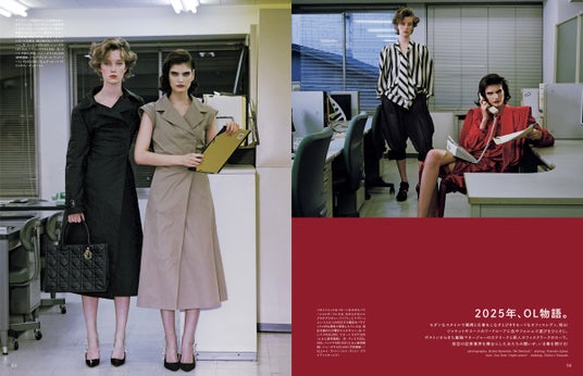 モダンなスタイルで颯爽と仕事をこなすとびきりモードなオフィスレディ、現る! ジャケットやスーツのワードローブに色やフォルムで遊びをひとさじ。ボストンからきた敏腕マネージャーのカテリーナと新人オフィスクラークのローラ。架空の証券業界を舞台にした女たちの闘いが、いま幕を開ける!