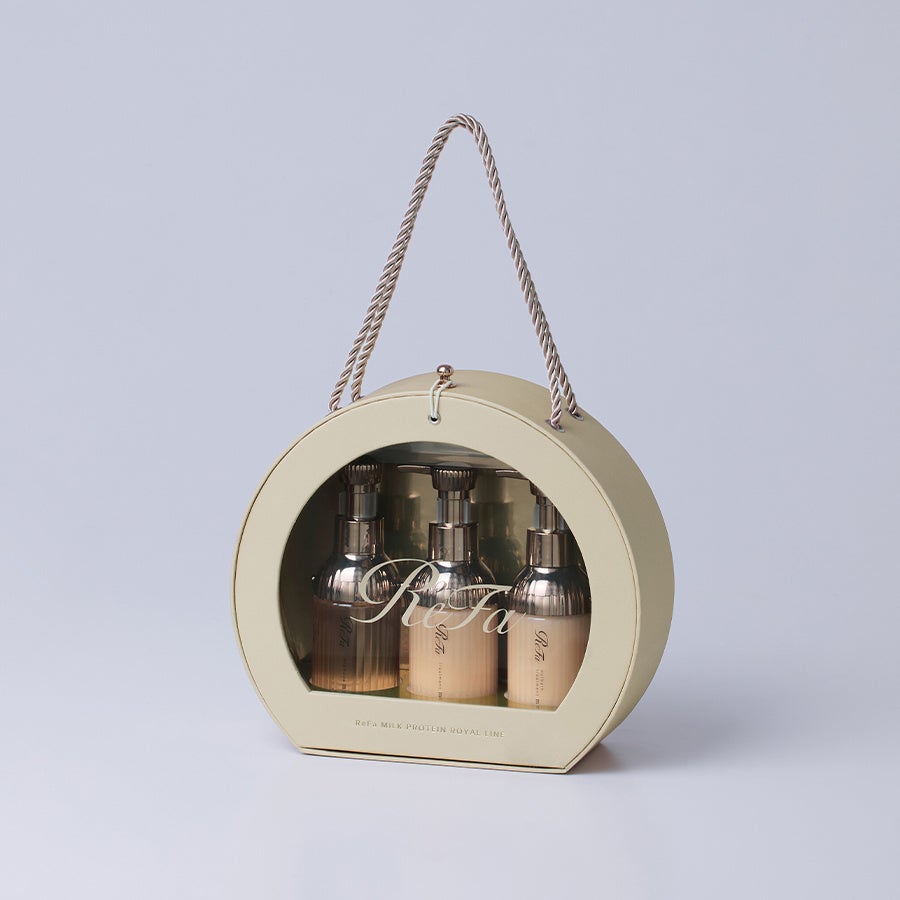 ReFa MILK PROTEIN HAIR CARE SERIESの各商品を、ラウンド型の特別なオリジナルギフトBOXに詰め込み、さらに、ReFa MILK PROTEIN SHAMPOOを象ったオリジナルチャーム※をセットにしたスペシャルセットです。