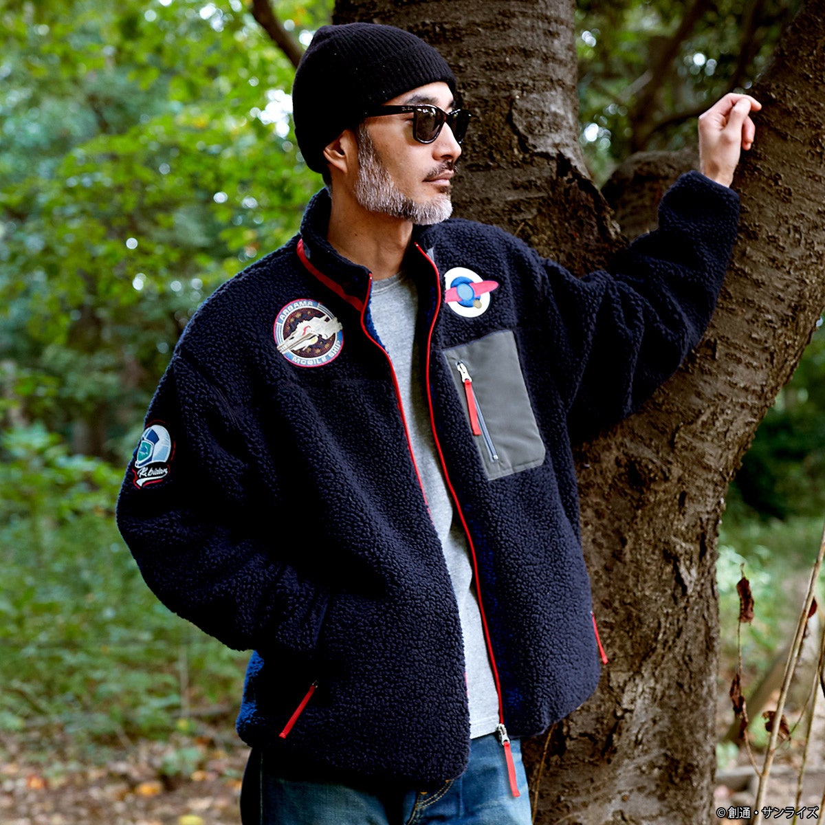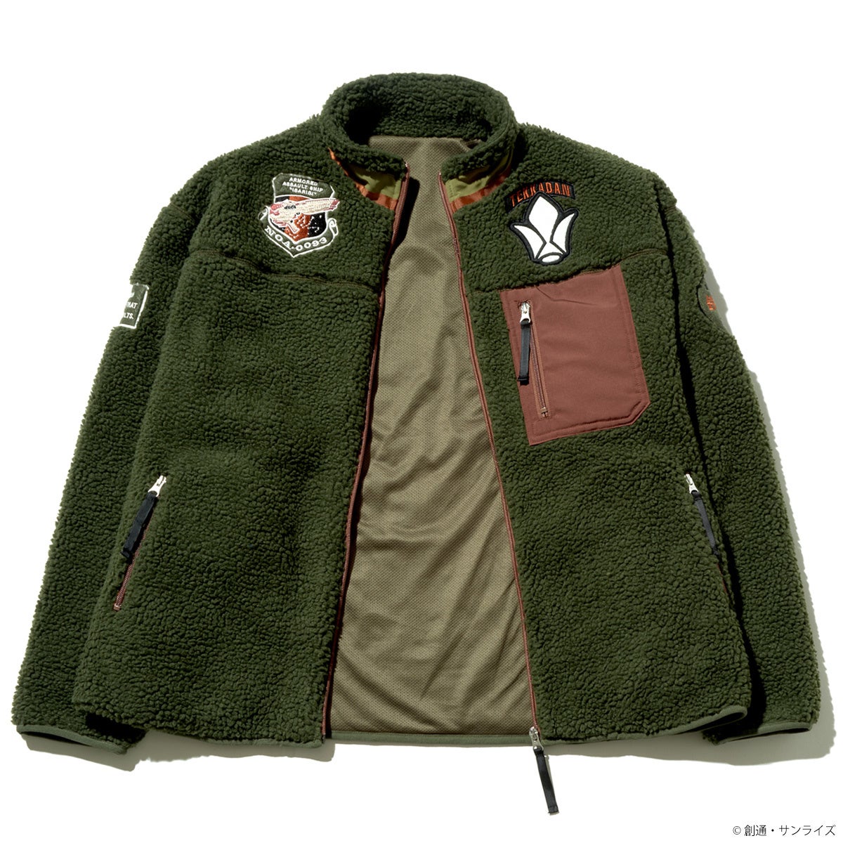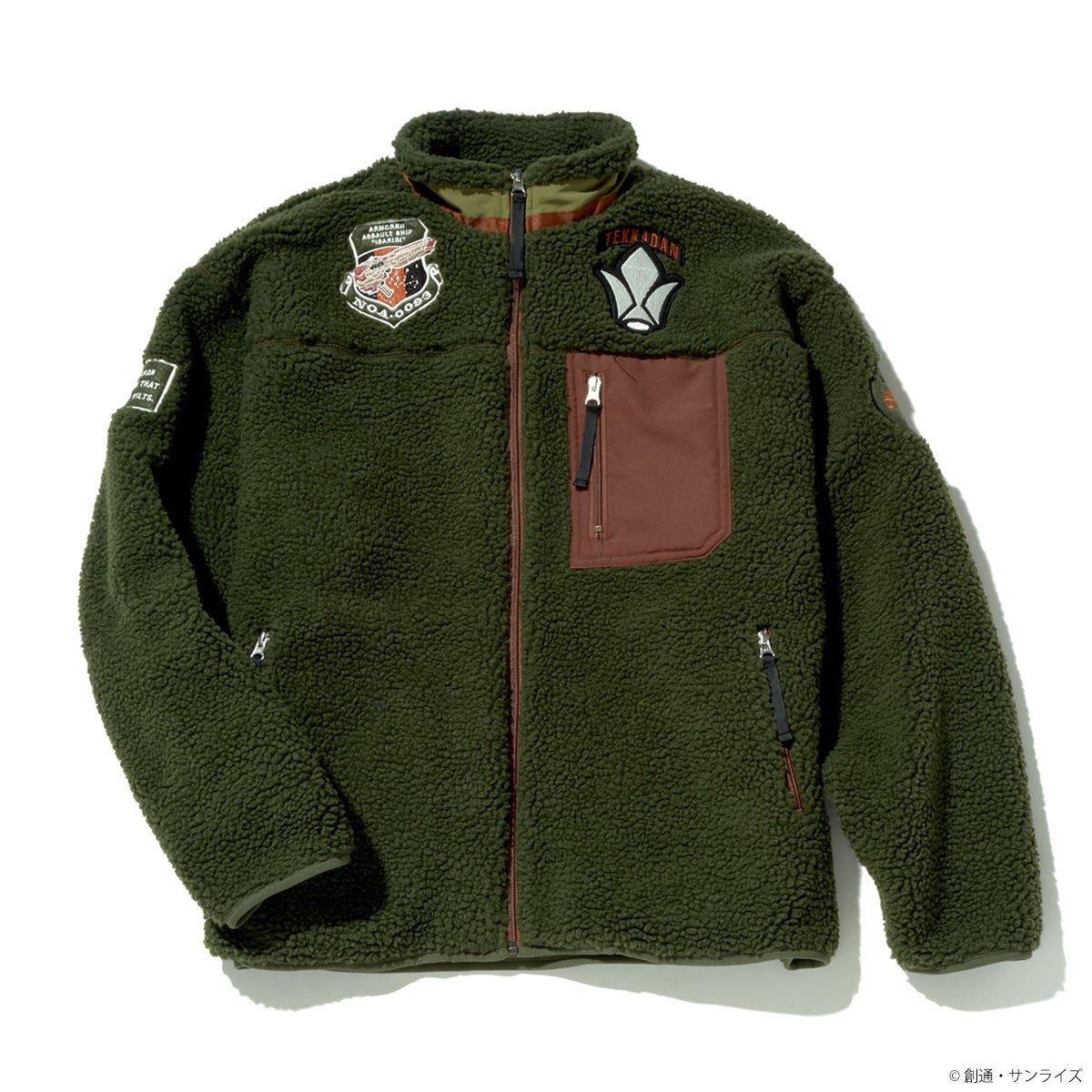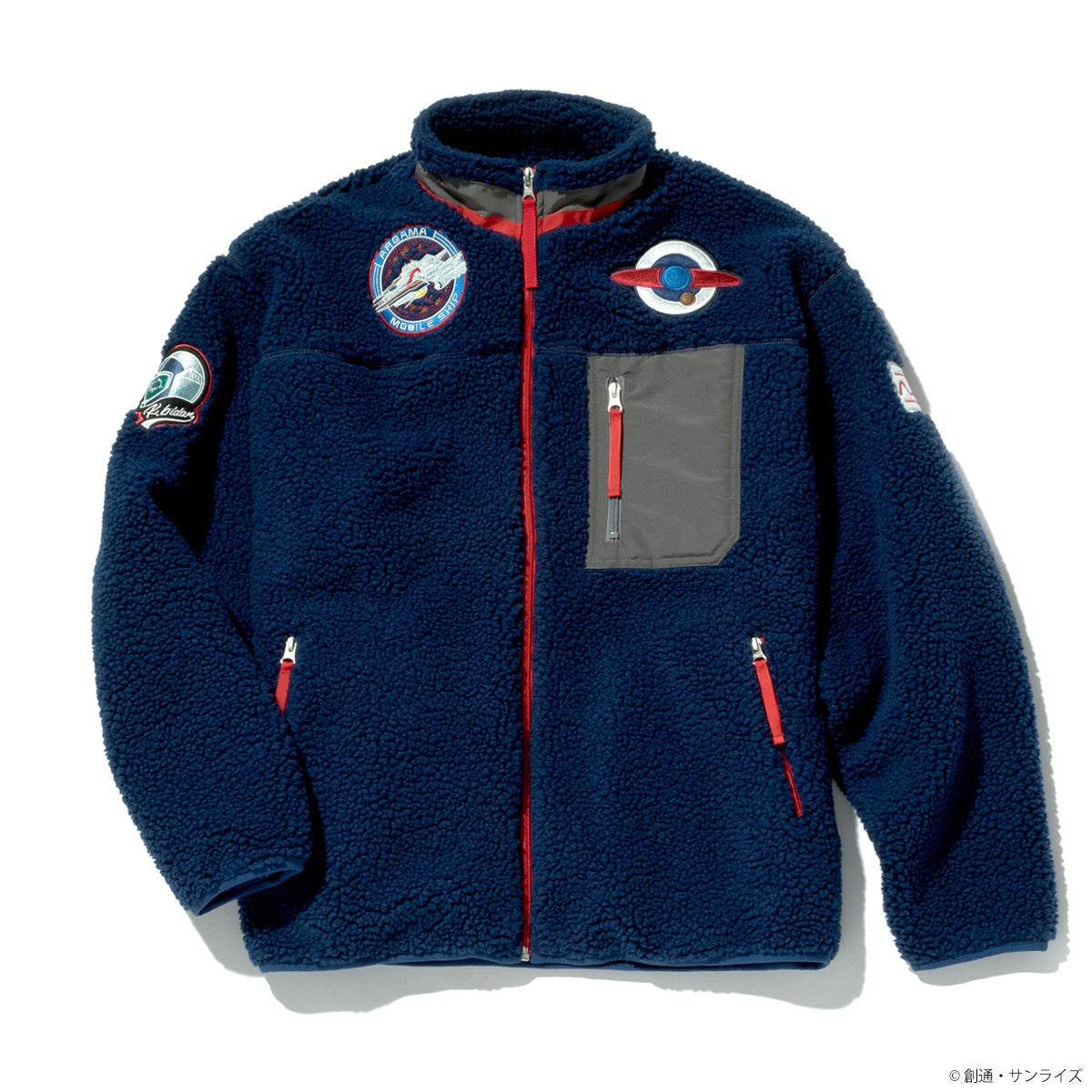 『機動戦士Zガンダム』、『機動戦士ガンダム 鉄血のオルフェンズ』より、ボアジャケットが登場!ふわふわと暖かみのあるシープボアで仕上げたジャケット。両胸、両袖に各作品モチーフのワッペンを配置、首元までしっかりとカバーする立ち襟デザイン、別布で切替えたファスナー付きの胸ポケットも実用面ではもちろん、デザインのアクセントになっています。防寒性に優れた表地と吸湿性に優れたメッシュ状の裏地を使用した、機能性アウターです。