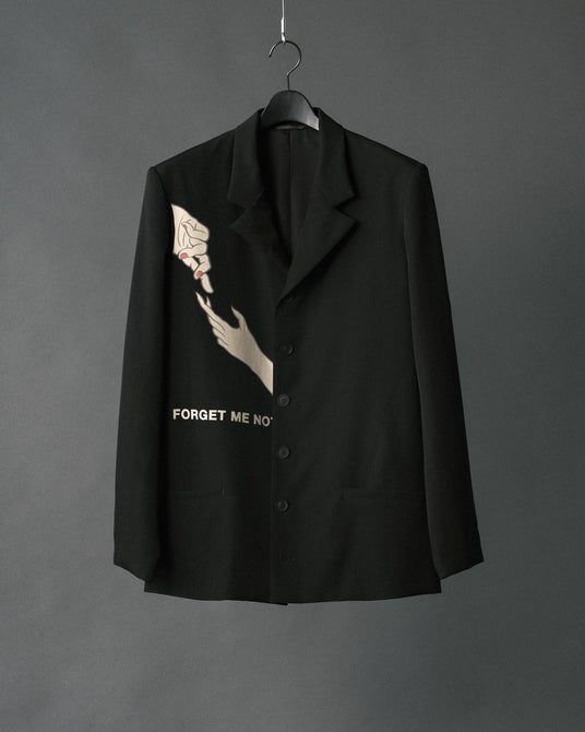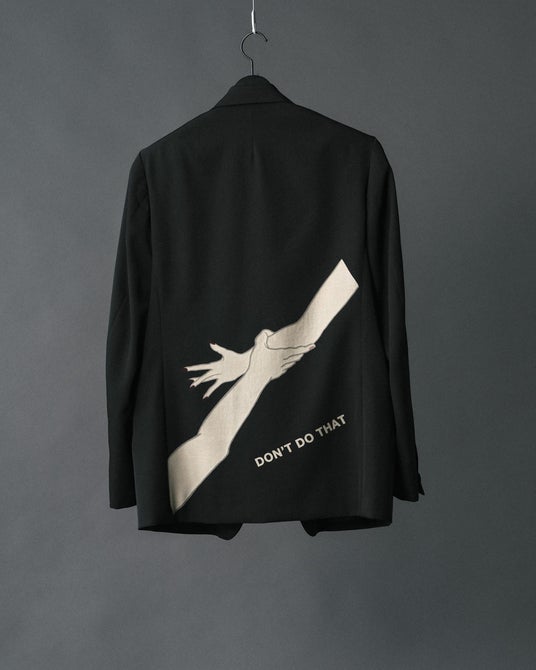 本POP-UP STOREでは、2009年春夏コレクションのランウェイに登場した象徴的なモチーフを用いて、定番素材であるウールギャバジンに抜染プリントを施して再構築したジャケット3型を展開いたします。深い黒地の中に鋏や手のモチーフが静かに浮かび上がり、時を経ても色褪せることのないデザインの魅力と存在感を備えた特別なシリーズです。