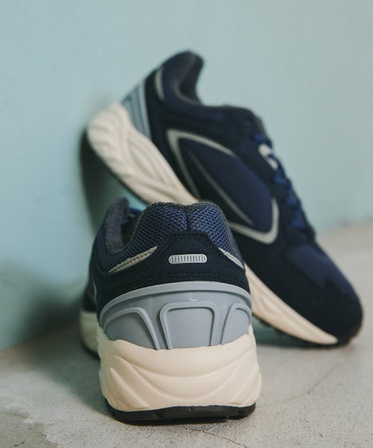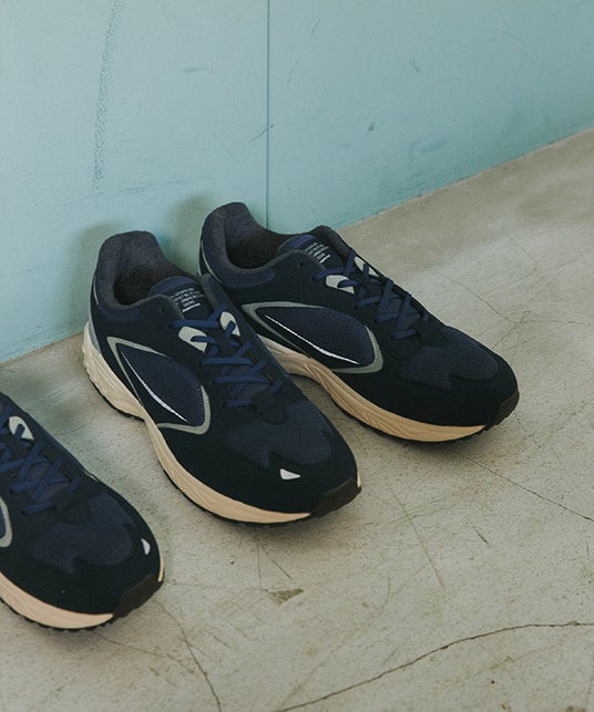 今シーズンはスタイリッシュさをより意識した《NAVY》のワントーンカラー。深みのある上品なネイビーは春の爽やかな装いにアクセントをプラスできる一足となっています。ヒールカウンターにはグレーを採用し足元でのグラデーションを楽しめます。シューレースはデフォルトのネイビーとプラスでホワイトの2セット 、今回カートン(靴箱)はネイビーで統一した特別なラインナップとなっております。