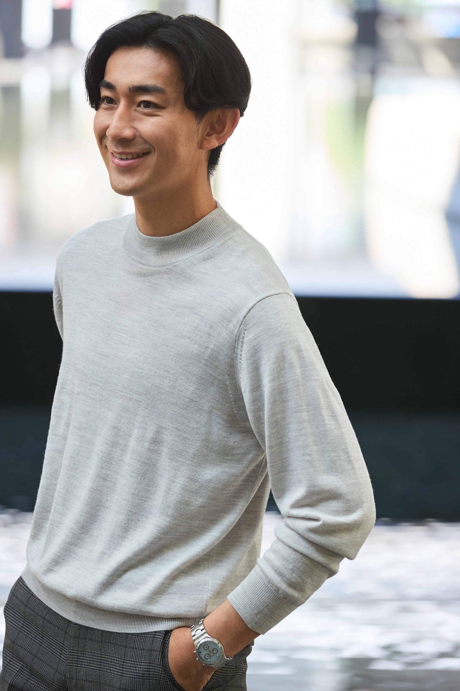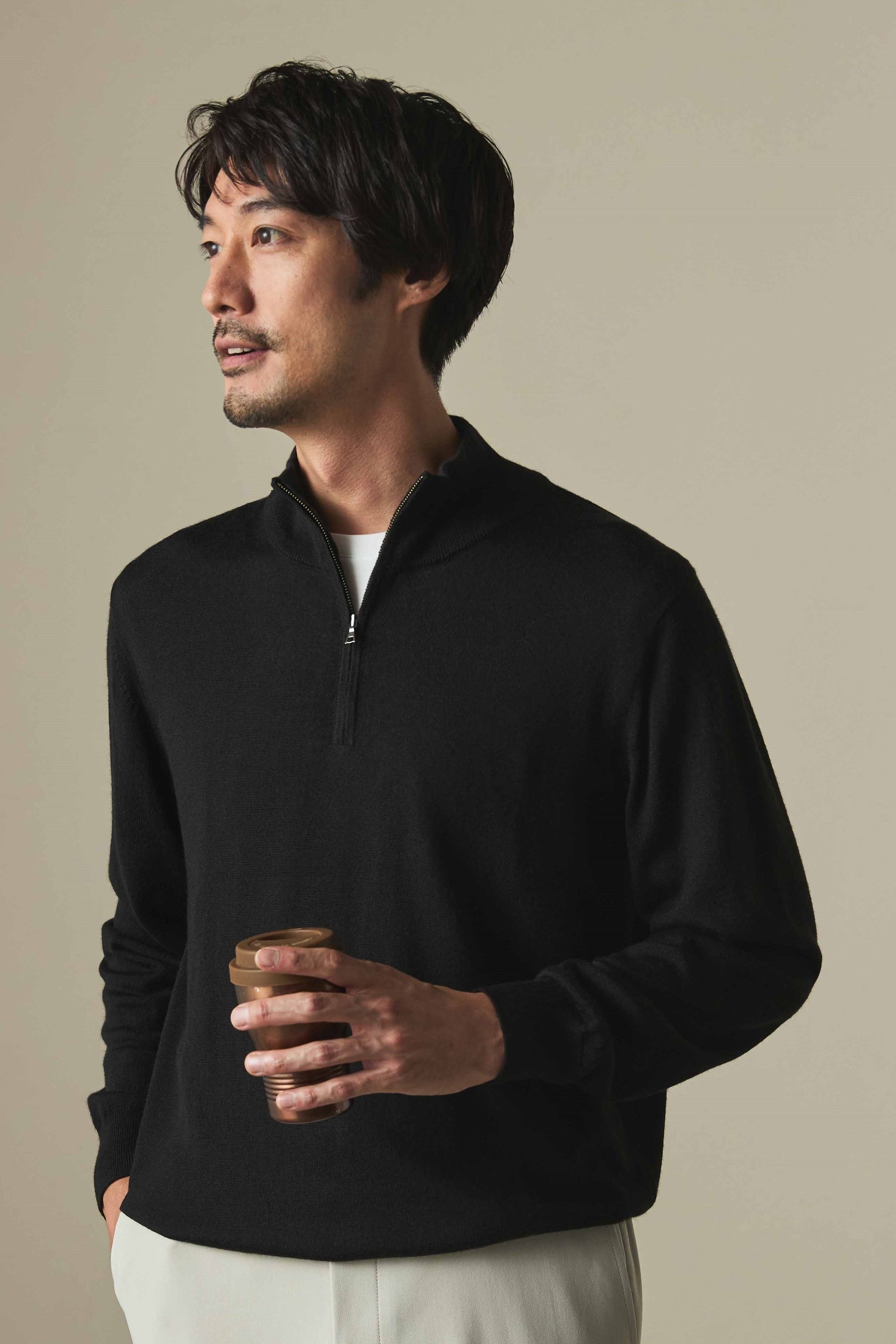 ウール50%・アクリル50%のハイブリッド糸により、ウールの風合いを保ちつつ静電防止や抗菌防臭効果が期待でき、自宅で洗濯機洗いも可能な高機能ニットです。一枚でも様になり、ジャケットインもしやすいモックネックは幅広いシーンにマッチします。今季はカラーバリエーションを11色に大幅拡充し、より多くのお客様のライフスタイルを彩ります。