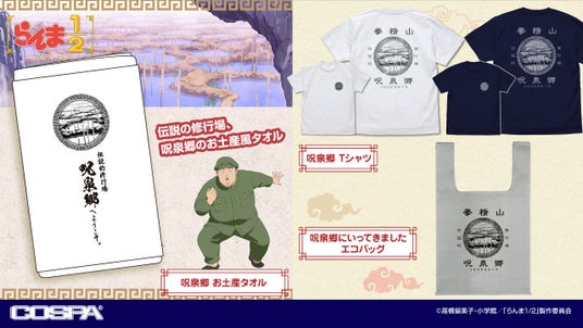 ほかにも「呪泉郷」のお土産をイメージしたタオルやTシャツ、「猫飯店」印のラーメンどんぶりなど作品を実際に体験できそうなアイテムも登場。