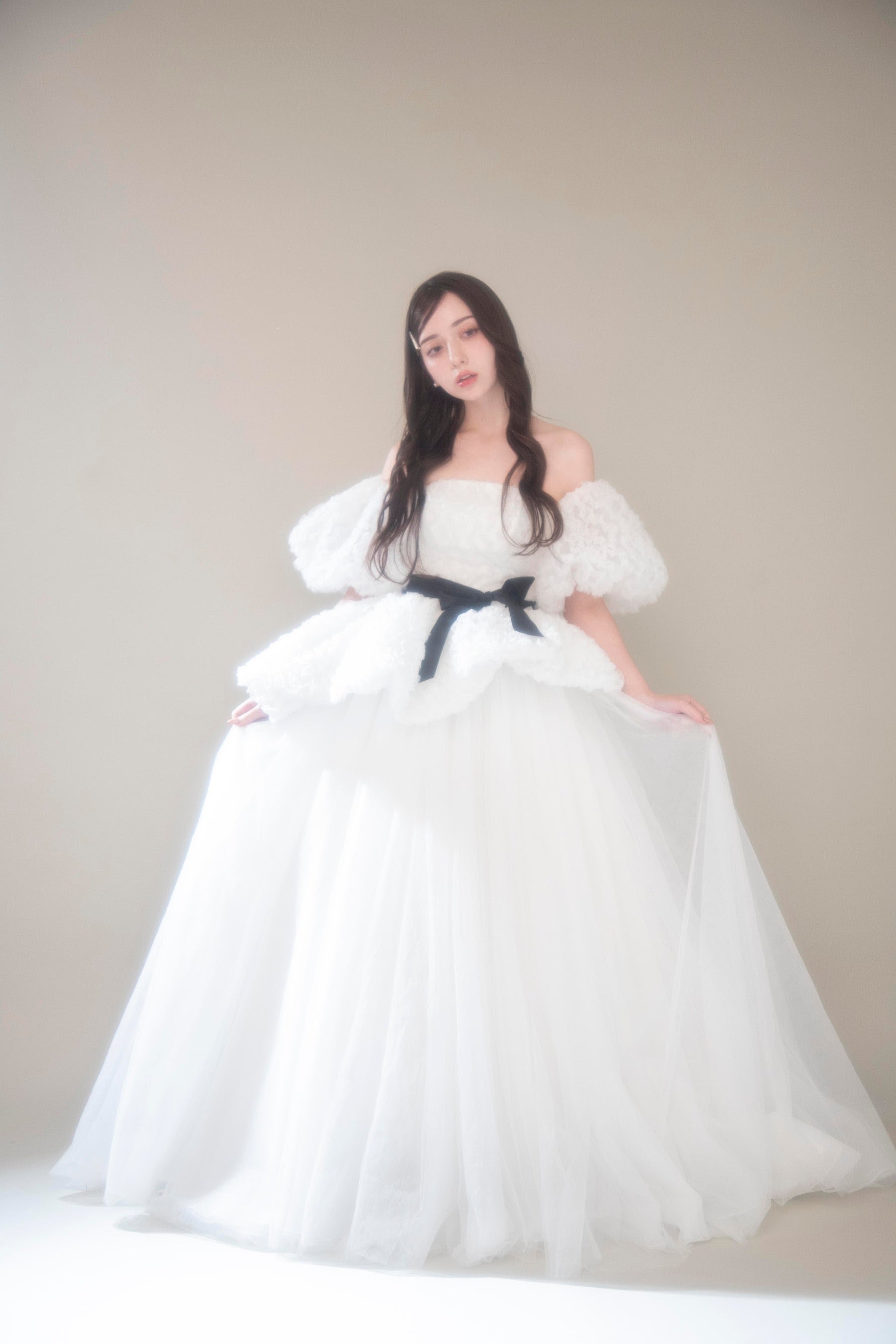 圧倒的なスカートのボリュームと上質な素材感は、まるで映画のワンシーンから飛び出したような「非日常」的な体験を提供します。