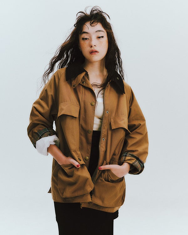 URBAN RESEARCHが別注した「OS BEDALE」は、バブアーの機能美に都会的なエッセンスを融合させた特別仕様。ゆったりとしたシルエットに、あえてタイトスカートやヒールを合わせることで、フェミニティに新たな文脈が生まれる。