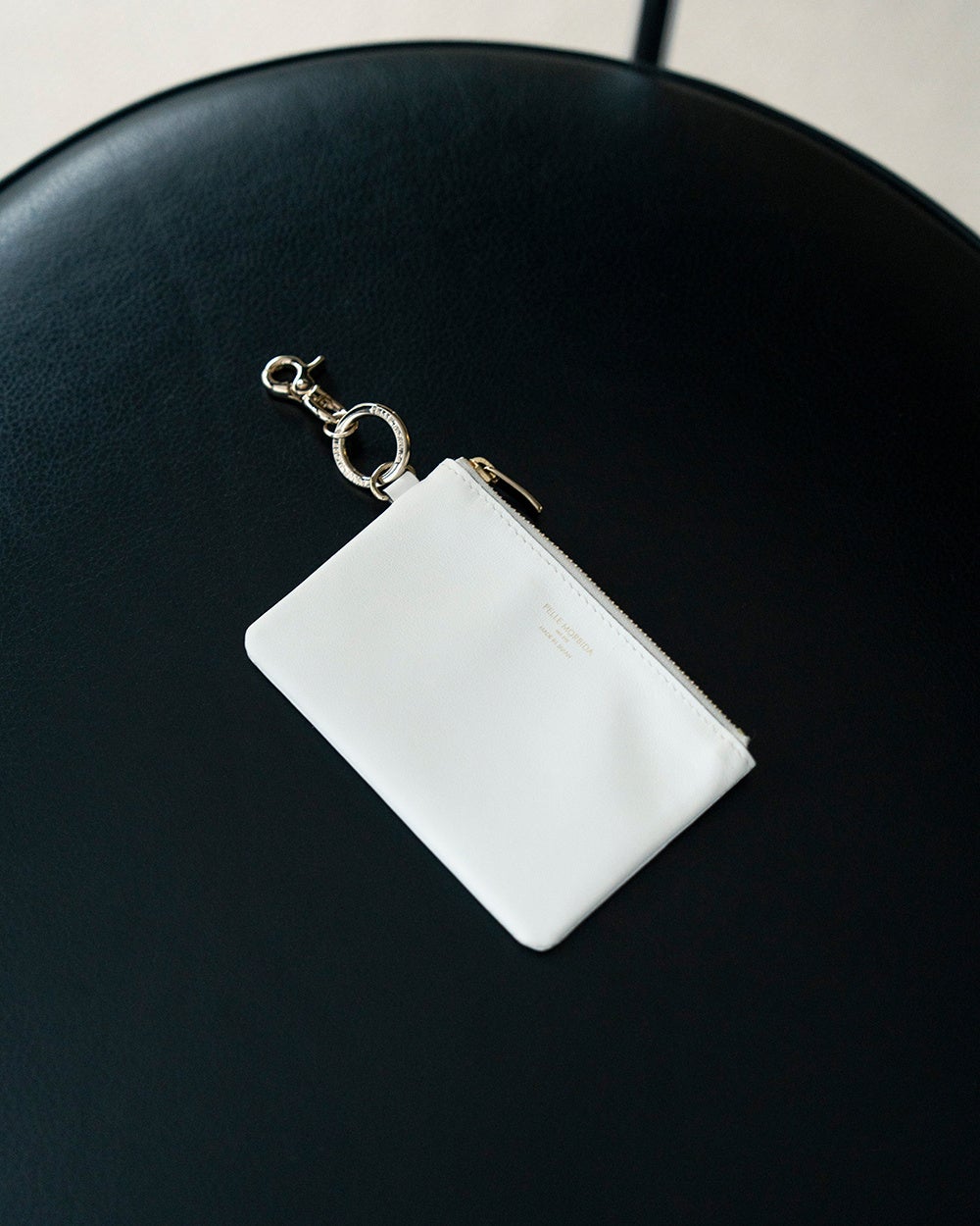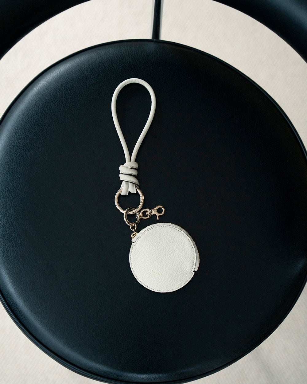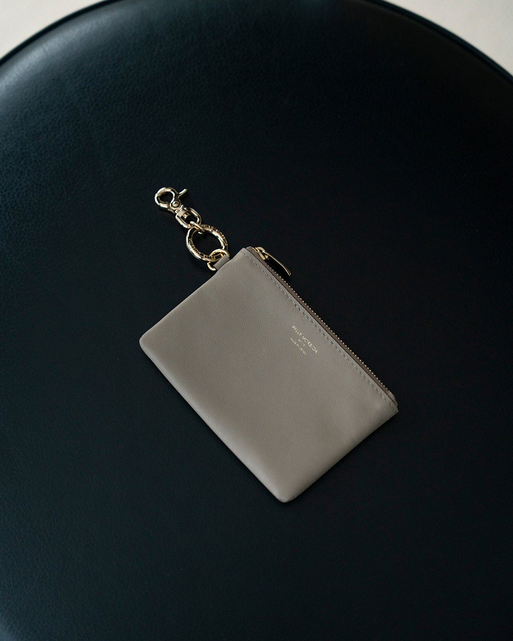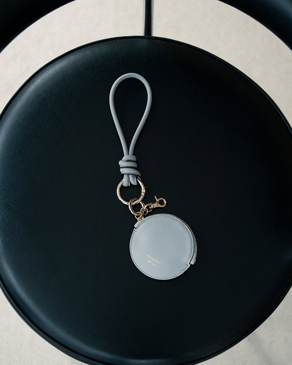 ラウンドコインケース&コインパースラウンドコインケースはシボ感のあるレザーを用いつつ、特徴的なストラップがデザインのアクセントに。