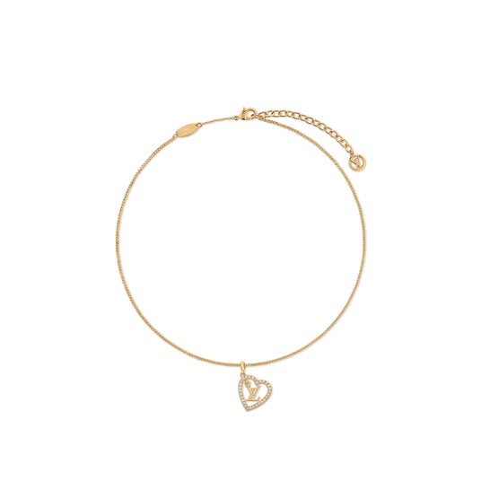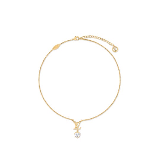 「ネックレス・LV アイコニック ハート」は、ゴールドカラーのメタルで象ったLV イニシャルに、きらめくジルコンを散りばめたハートでアクセントを効かせたペンダントトップが、細いリンクチェーンに繊細に揺れ動きます。アジャスターチェーンを彩るLV サークルのチャームがアイコニックな華やかさをプラス。