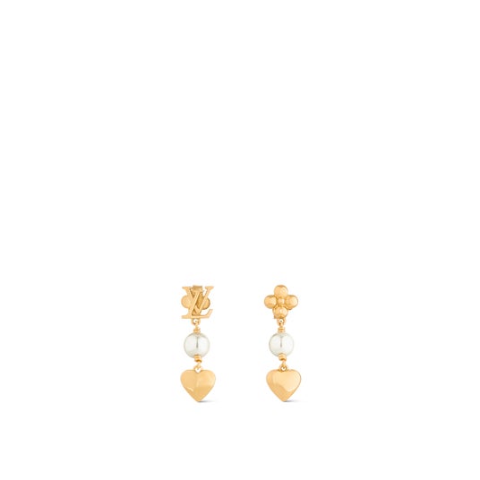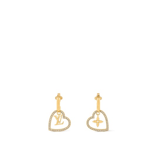 「ピアス・マイLV ハート」は、ゴールドカラーのメタルにきらめくジルコンをあしらいアシンメトリーなデザインに仕上げました。片方はハート型のフープでモノグラム・フラワーを囲み、もう片方にはLV イニシャルを配しています。グラマラスで洗練された装いに上品な個性を添えるラグジュアリーでエレガントなアイテムです。