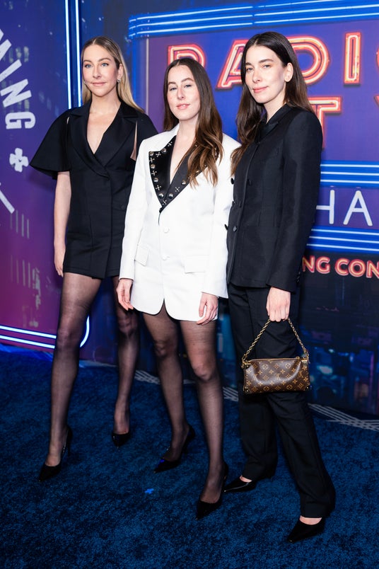 エスティ、アラナ、ダニエル・ハイムが、ニューヨークで開催された「サタデー・ナイト・ライヴ」50周年記念コンサートにルイ・ヴィトンを着用して登場しました。