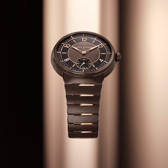 ルイ・ヴィトンのウォッチメイキングの真髄を体現するセラミックとローズゴールドの「タンブール」。