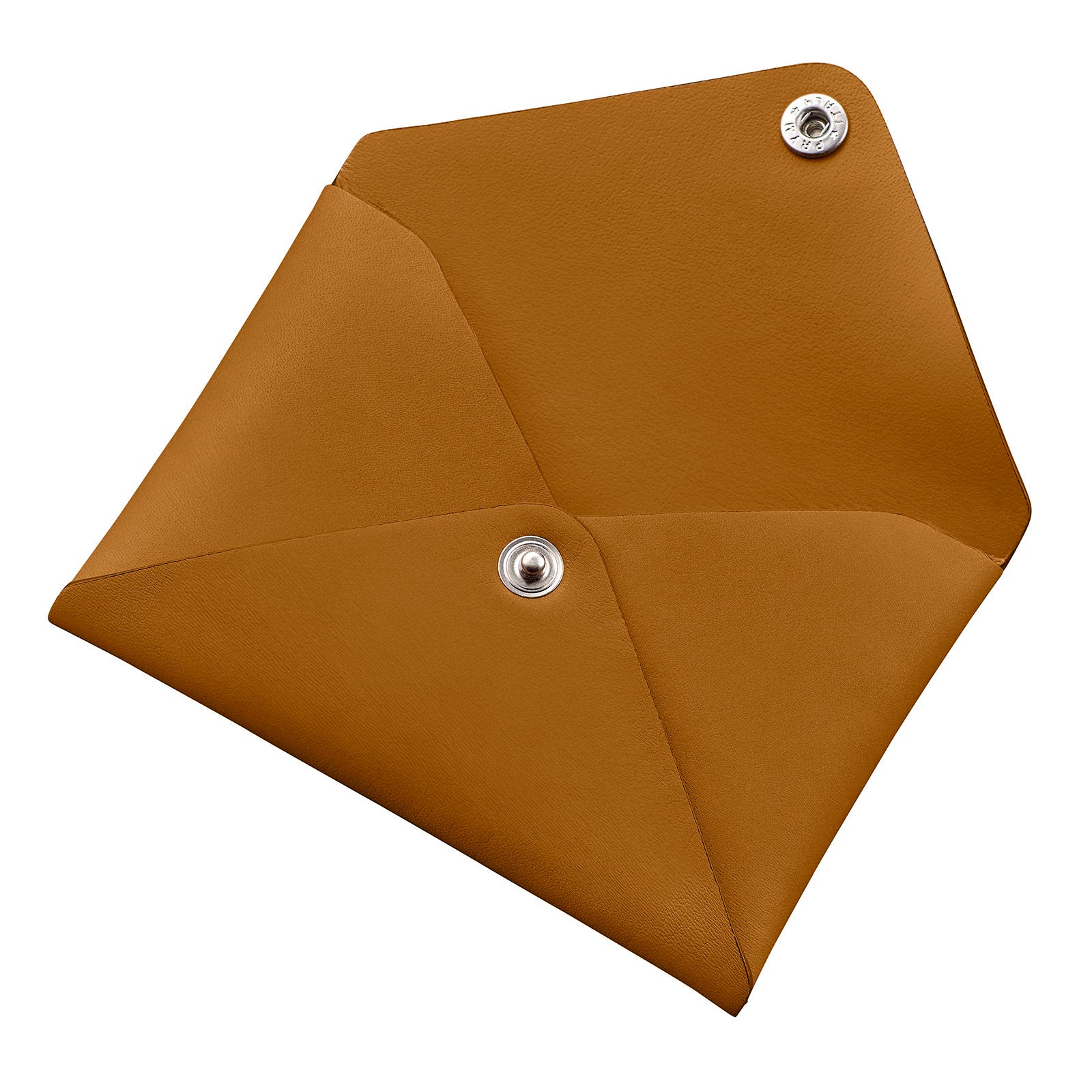 100本限定のスペシャルなセットには、PELLE MORBIDA製のエンベロープポーチを付属。一枚革を折りたたんで仕立てられたミニマルなデザインとなりました。贅沢に裏地にもレザーを用い、名刺やクレジットカードをリッチに収納できる仕様です。