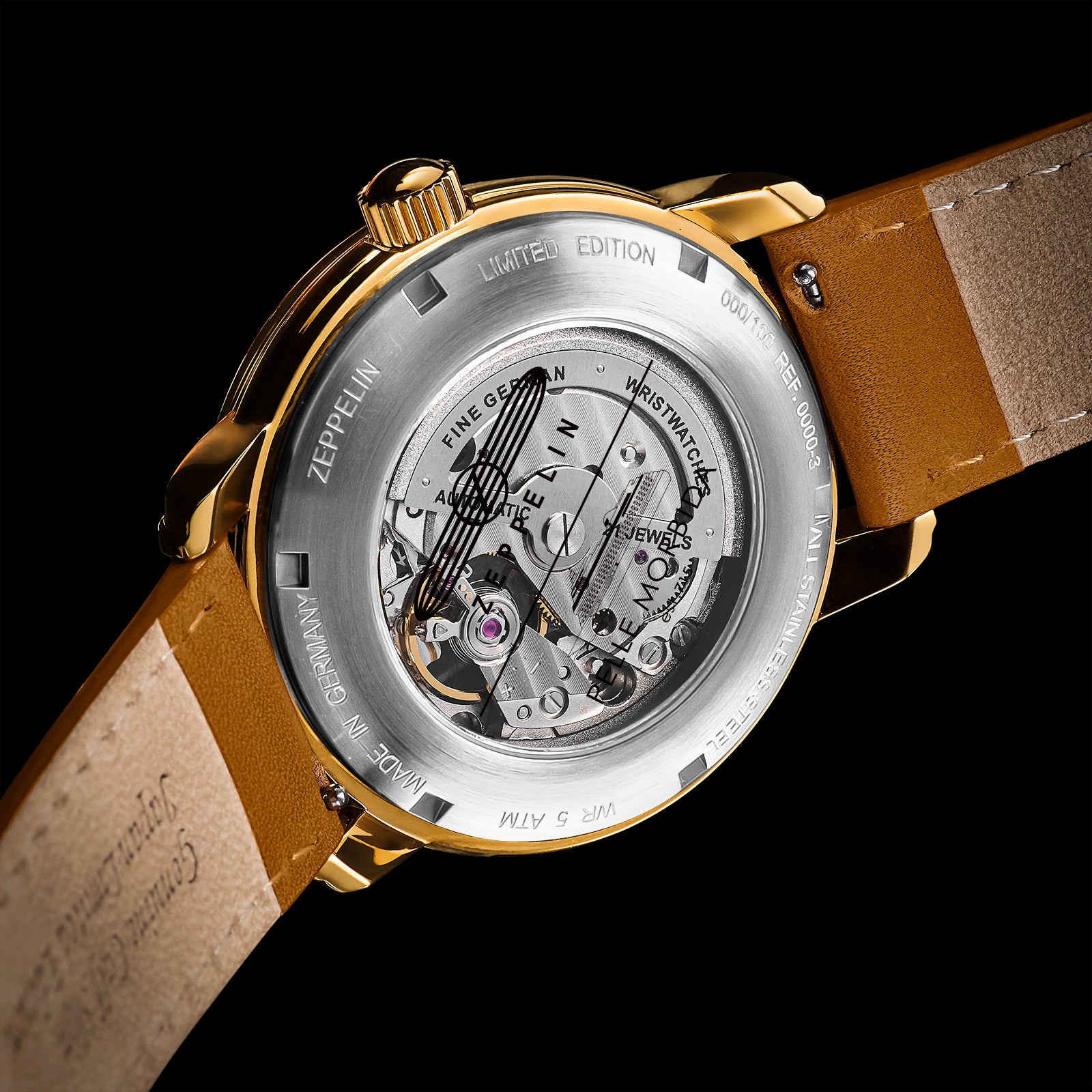 ベースとなるのは、ZEPPELIN 100周年記念シリーズの人気モデル「オープンハート・オートマティック」。ダイヤルの心臓部をくり抜いたオープンハート仕様で、裏蓋はシースルーバック。これにより、時計の鼓動を表からも裏からも堪能できます。