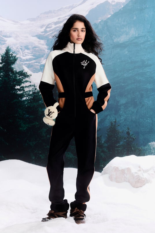 シルエットを完成させるのは、今やアイコニックな存在となったモノグラム・パターンのレンズを備えたスキーマスク。コンテンポラリーでスポーティなタッチを効かせます。