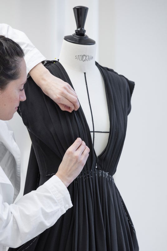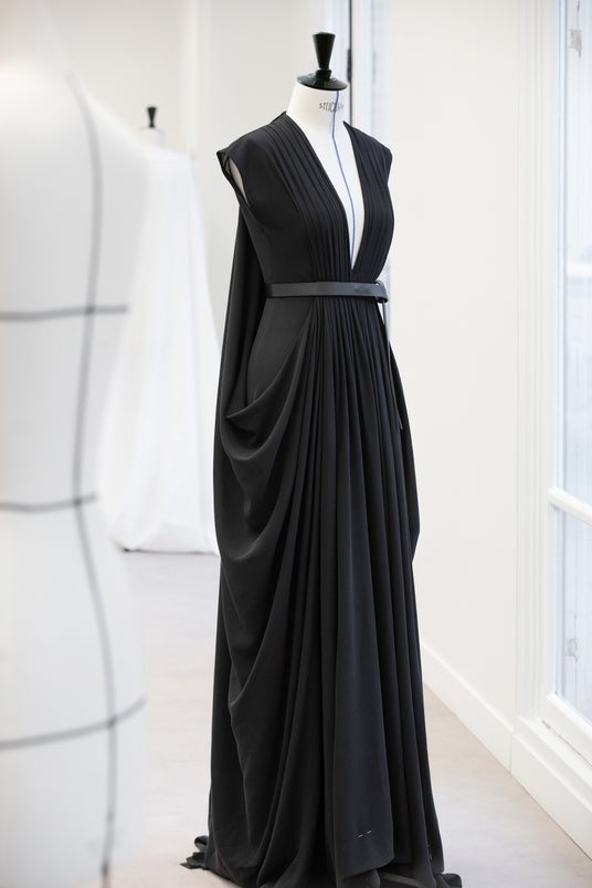フェルナンダ・トーレスは、ブラックのシルククレープドレスを纏い、ブラックのレザーベルトを合わせました。このドレスはメゾンのアトリエで850時間をかけて完成に導かれます。ディオールアトリエのエクセレンスを体現したサヴォワールフェールの詳細をソフィ・カルによる撮り下ろし写真からご覧ください。