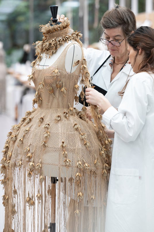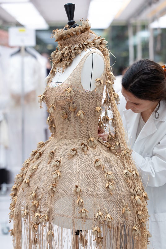 2025年2月7日、ロサンゼルス。第30回クリティクス・チョイス・アワードにアリアナ・グランデが登場。アリアナ・グランデはディオール 2025年春夏 オートクチュールコレクションから、肩にフェザーがあしらわれたショートドレスを纏いました。ラフィアの織物が刺繍されたようなチュールに、オーガンザのフラワー、そしてストロー素材の装飾が施されており、グログラン素材のクリノリンの上をカバーしています。このドレスは、刺繍に2500時間、そして製作に1300時間をかけて完成に導かれます。ディオールアトリエのエクセレンスを体現したサヴォワールフェールの詳細をソフィ・カルによる撮り下ろし写真からご覧ください。