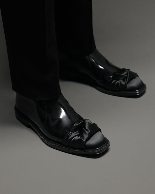ディオールの2025-2026年ウィンター メンズ コレクションは、卓越したシルエットを提示し、メンズクチュールにおける斬新で、限りなくコンテンポラリーなスタイルを探求します。「ディオール パルマレス」シューズは、その独自性と革新性のエネルギーを昇華させ、どのルックにもこの上ないエレガンスを添えます。風合いのあるレザーで引き立てられたこれらの特別なクリエイションは、ローファー、アンクルブーツ、ダービーの3つのバリエーションで展開されます。それぞれのスタイルは、この上なく洗練されたサテンのリボンで飾られています。このユニークなアイテムは、よりクラシックなスタイルでも登場し、メゾンのサヴォワールフェールを反映したクリーンでグラフィカルなラインで仕上げられています。さりげないアクセントとして、繊細に刻印された“DIOR”シグネチャーが、各ピースのヒールとソールを完成させます。