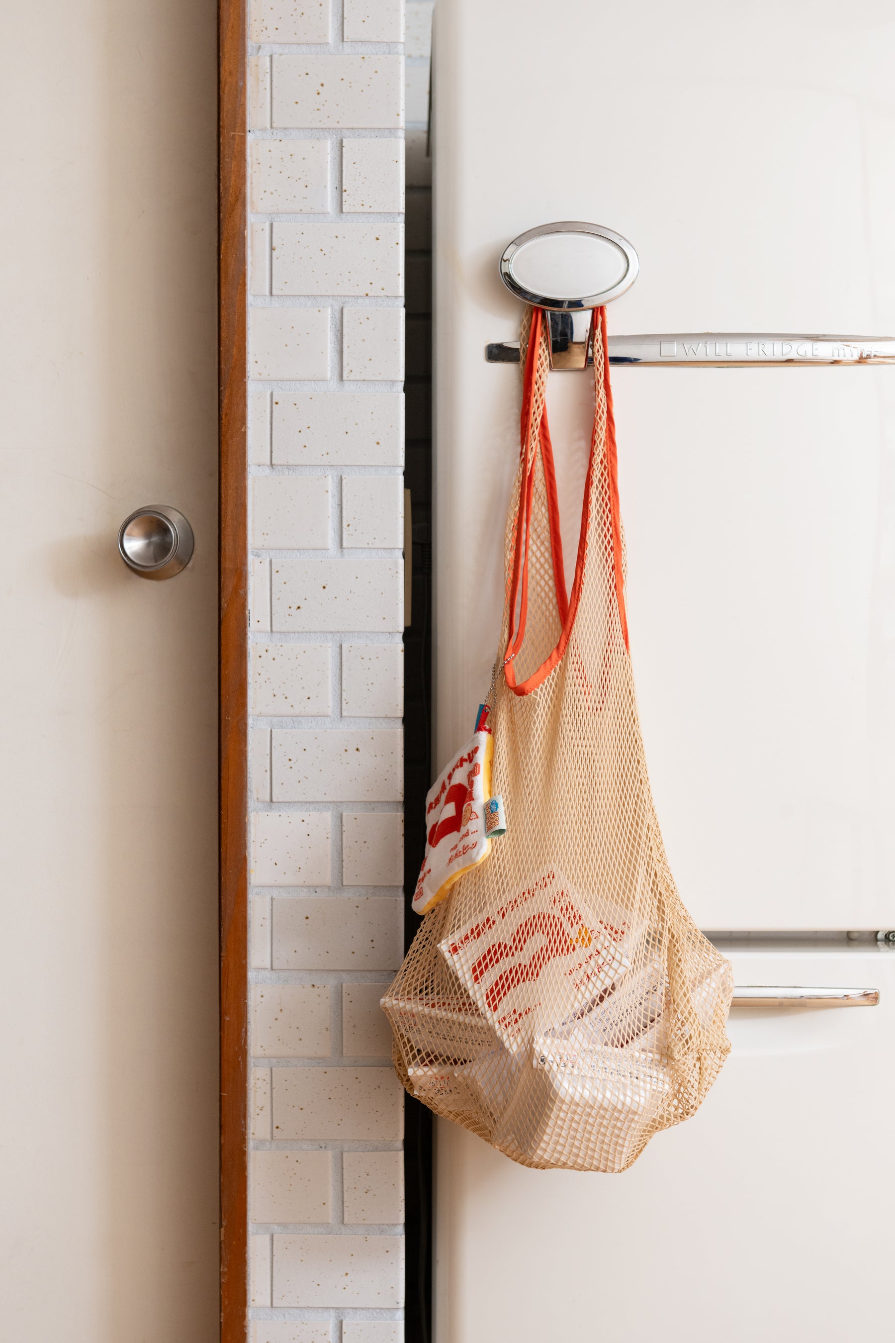 “納豆のように伸びる”ユニークなエコバッグは、普段使いしやすいサイズに仕上げました。