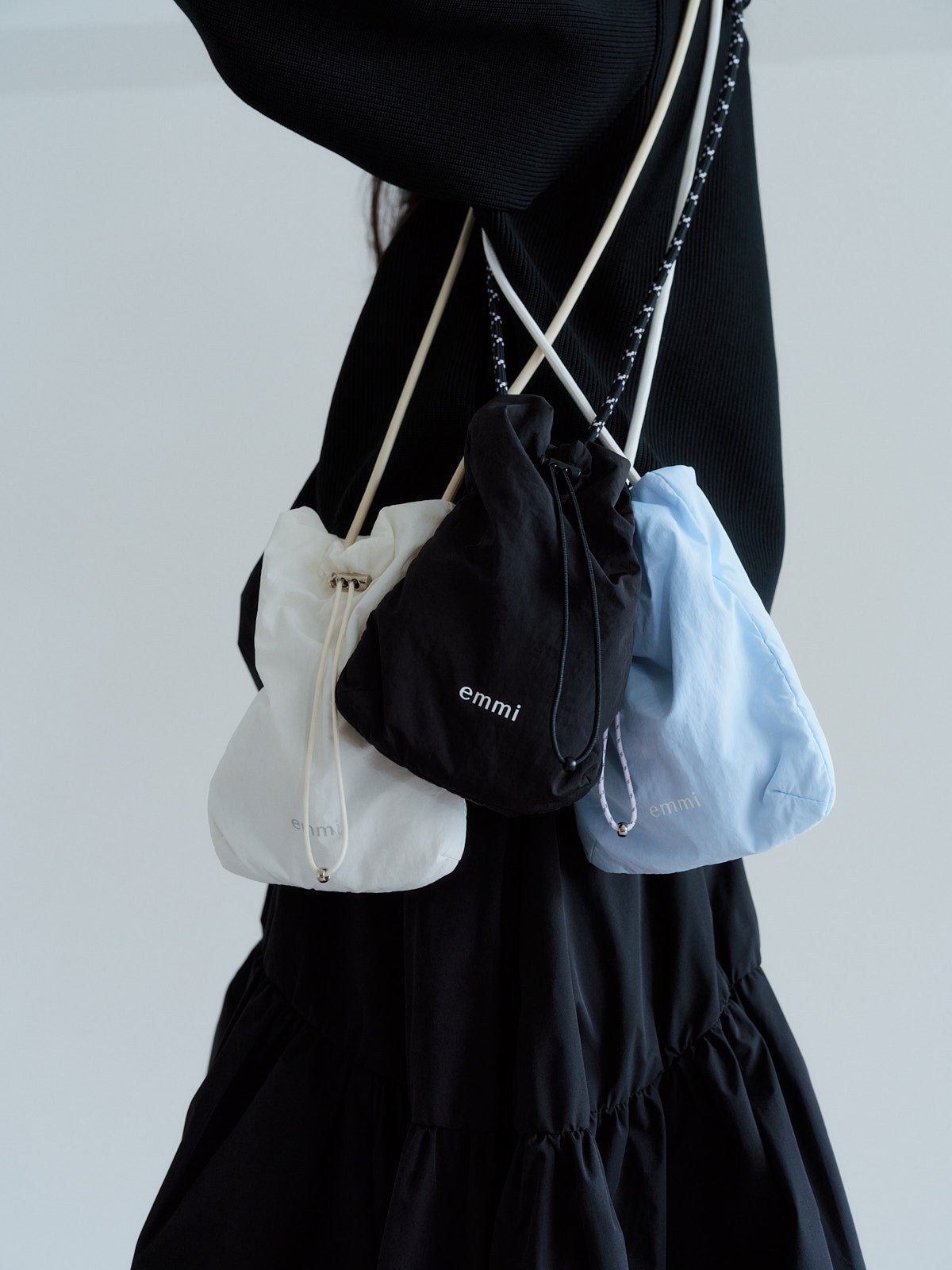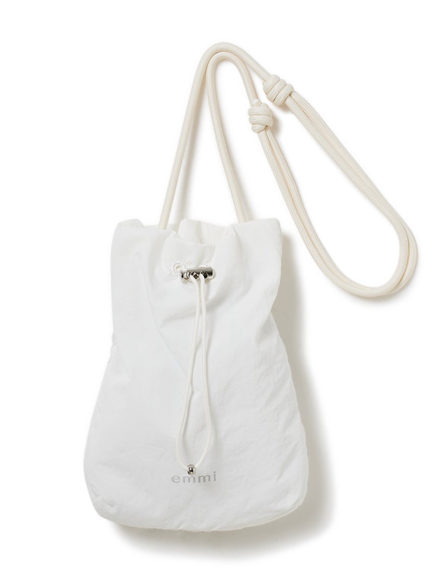 ダウンアウターをイメージしたふんわりとした素材のサコッシュ。コード紐とアジャスターディテールがスポーティーながら小ぶりなサイズ感でデイリーユースにぴったり。