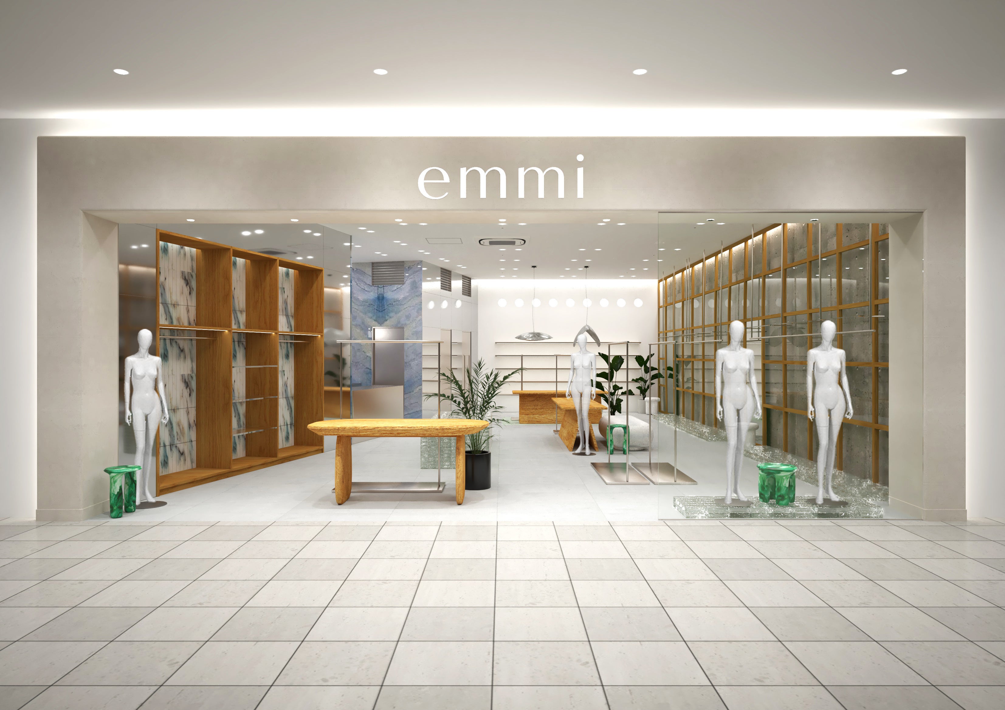 “クリアモード ’'をブランドコンセプトに掲げるemmi より、環境に配慮したクリーンな素材を多用する‘‘サステナブルコンセプトストア’'が誕生。