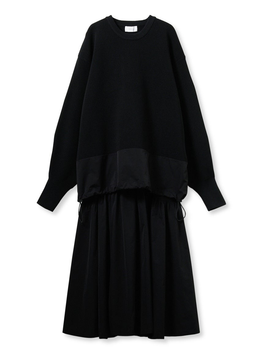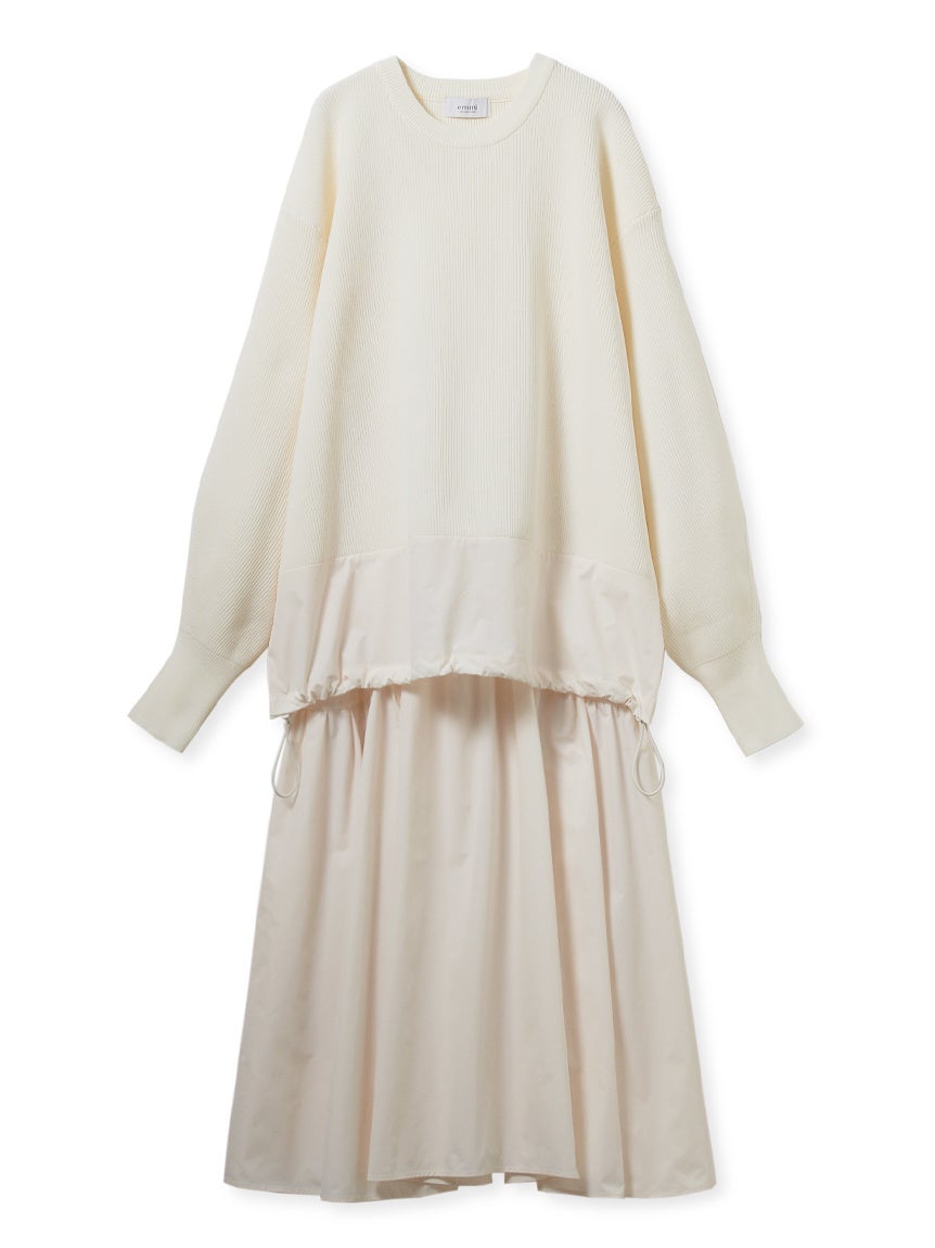 オーバーサイズながらもシンプルなシルエットで大人のカジュアルスタイルを叶えるニットプルオーバーと、ドラマチックに広がるAラインスカートのセットアイテム。トップスは裾がドロスト仕様になっており、ゆるっとしたシルエットから絞ってメリハリのある着こなしまで、バリエーションが楽しめます。