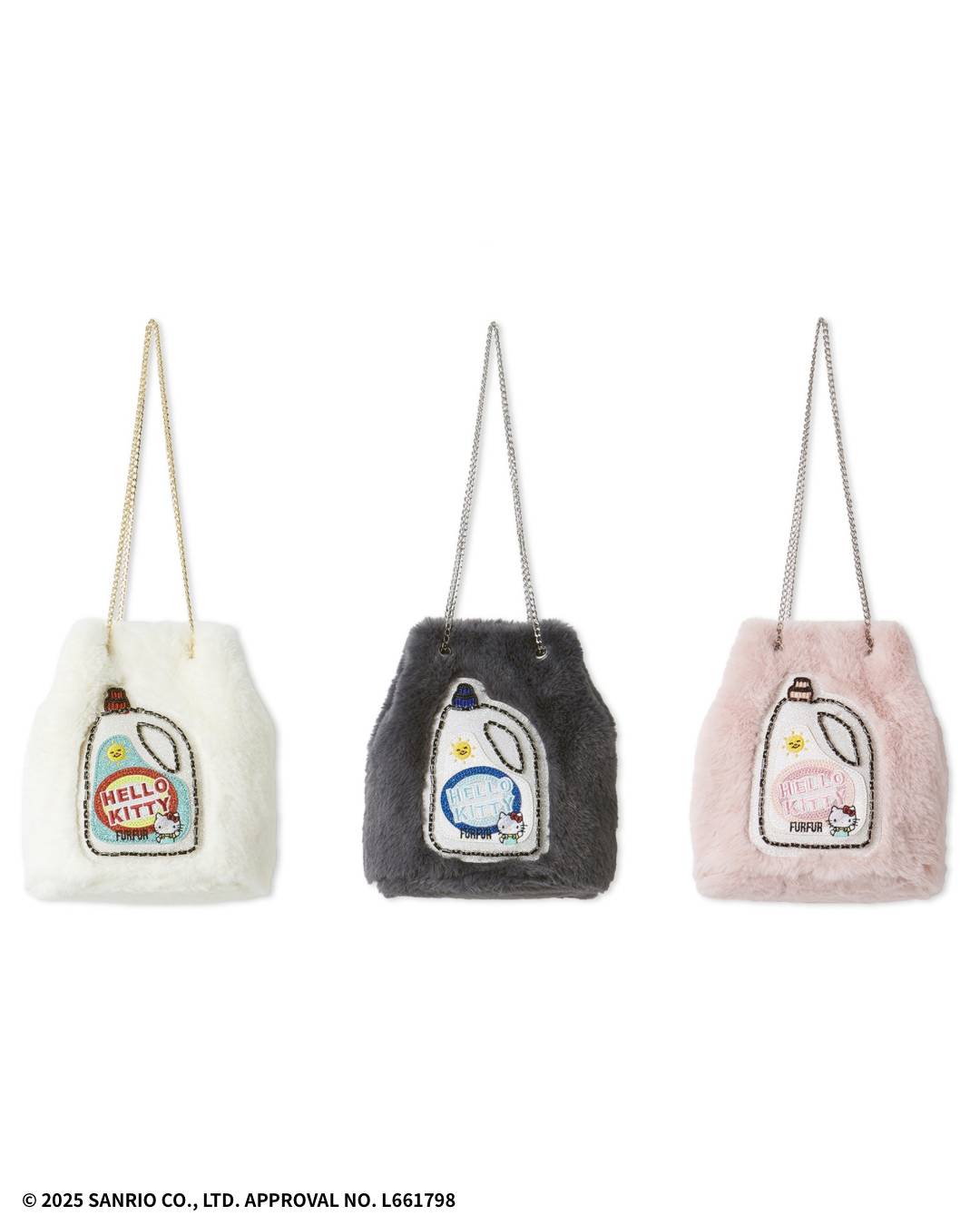 ハローキティのリボンをふわふわのエコファー素材で表現したチェーンバッグ。