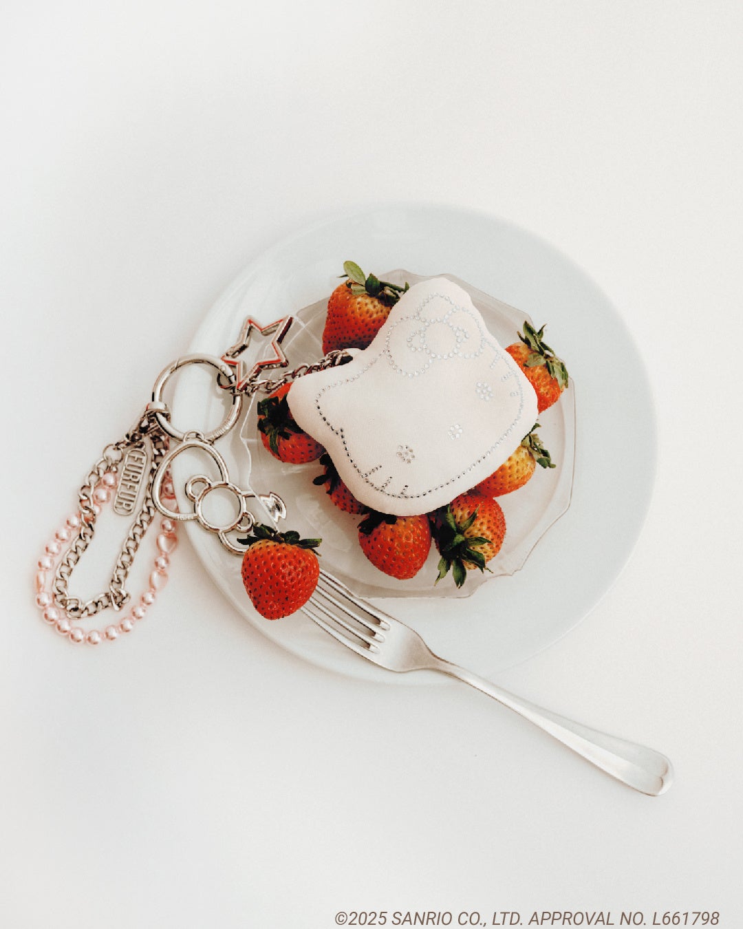 ボリュームのあるクッションにラインストーンで表現したハローキティが愛らしいオリジナルチャーム。