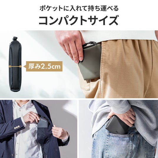 薄型&正方形デザインでポケットに収まりやすいのに、収納力は抜群。スマートキー、カード、小銭、紙幣まで整理して収納可能。その他、アクセサリーポーチとしても使えます。