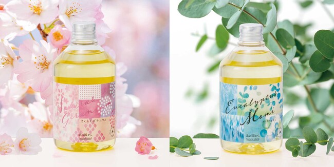 ナチュラルアイランドフレグランスデザイナーが調香した2つの香りでバスタイムを豊かに彩る写真右より アロマバスエッセンス ユーカリとモミ 300mL 2,640円(税込)/ 約18回分 、アロマバ...