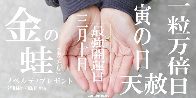 株式会社 JAM HOME MADE株式会社JAM HOME MADE(所在地:東京都渋谷区千駄ヶ谷、代表:代表取締役社長 高橋征明)は、開運“金の蛙”チャームのノベルティプレゼントを、2025...