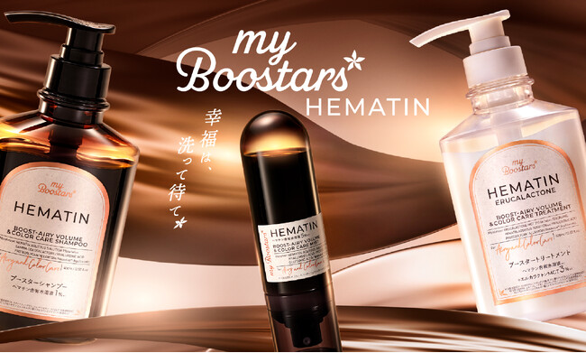 株式会社ネイチャーラボ〈 写真左から〉マイブースターズ ヘマチン ブースターシャンプー:400mL 1,694円、ヘマチン ブースターミスト:90mL 1,980円、ヘマチン ブースタートリート...